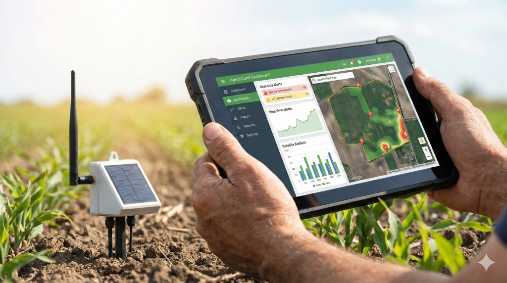 Real-time soil monitoring, weather stations, and AI-powered farm management platform — connecting every corner of your operation.